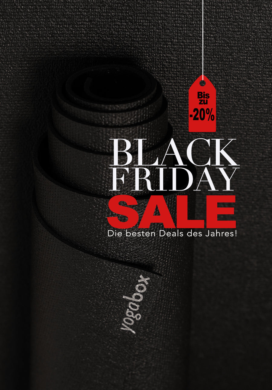 Finde Deine innere Balance und spare dabei kräftig! In unserem BLACK FRIDAY SALE erwarten dich exklusive Angebote rund um Yogamatten, Meditationskissen und hochwertiges Yogazubehör.